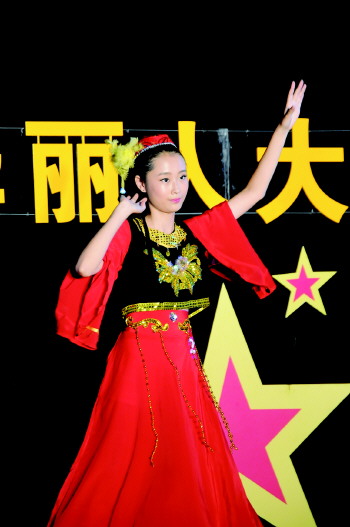 21号选手杨林静带来一段维族舞。 本报记者 孙国祥 摄