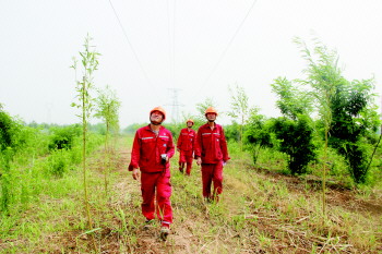 电力管理总公司职工正在酷暑中巡线,确保高温环境安全供电。