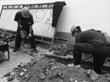 为了保证园林小区正常供水,德州市供水总公司更换供水老管道,新管道管径160毫米,供水性能将更加稳定。图为8月1日,工作人员正在准备前期工作,该工程将于近日完工。 本报记者 贺莹莹 摄