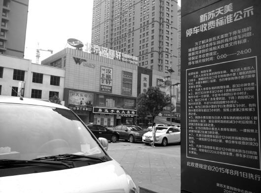 随后,记者采访了新苏天美购物中心企划部经理张南。据其介绍,原来商场的地下停车场是免费的,但是,由于周边宾馆、住户以及商店人员将车停靠在这里,甚至出现很多“僵尸车”,为了统一管理,经相关部门批准,商场才对外来车辆进行收费。