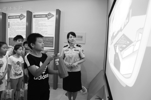 7月30日上午,一培训学校的近60名小学生走进邹平县公安局黛溪派出所安全防范体验馆进行安全体验。该安全防范体验馆分防盗防骗、交通安全、消防安全三个体验区。在这里,民警通过引导体验者观看骗子行骗道具,体验醉酒感觉,学习交通安全标志,体验报火警,查找消防隐患,学习使用灭火器等形式,开展青少年法制及安全教育,切实筑牢平安暑期防线。