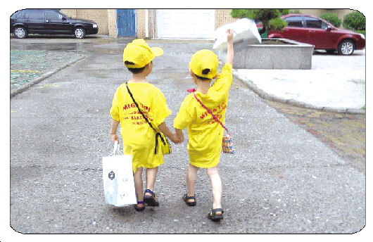 图一:颁奖典礼结束后,报童们高兴地拿着奖状合影。 记者 程凌润 摄 图二:家长分享小报童的成长与进步。 记者 魏晓燕 摄 图三:4岁的小报童卢睿成和张博轩手拉手去卖报。 李婷 摄