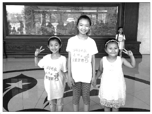 活动结束了,12组的报童王姝尧和曹子莹拉着组长刘慧泽一起合影, 纪念她们难忘的时光。 曹子营妈妈 供图