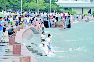 4日,在幸福公园岸边,不少外地游客游玩。近期多雨,丝毫没有影响市民、游客出游兴致。5日多云间阴有雷雨,最高气温30℃。