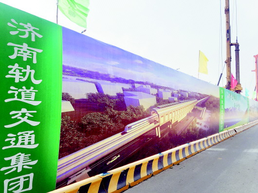 高铁工地施工围挡,挡不住泉城人对未来高铁生活的想象。 本报记者 王媛 摄