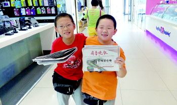 本报8月5日讯(记者 张萍) 在新玛特购物广场,有这样两名小报童,他们从第一期开始,一路走来,一起售报,一起PK ,一起成长,售报促进了他们的感情,也让他们更加懂事,他们就是左津硕和左津灏兄弟俩。