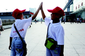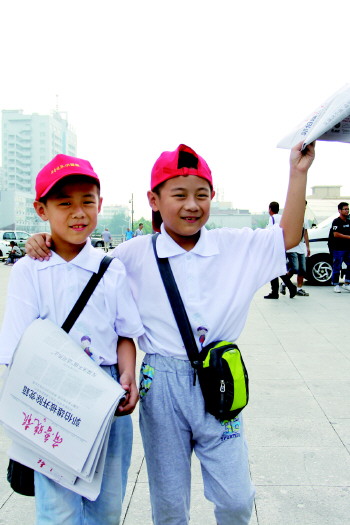 弟弟佳琪的性格活泼,所以弟弟一直在火车站广场跑来跑去推销报纸,而佳昕在售票厅里找了一个窗口“蹲点”。当佳昕从售票厅里出来的时候,佳琪正拿着手里最后一份报纸向他挥手。佳昕看到弟弟的成绩,向佳琪竖起了大拇指。可是,佳昕那边的情况就没这么好了。看到哥哥手里的报纸,佳琪跑过去,从哥哥手里拿了大约10份报纸。有了弟弟的帮助没用20分钟,兄弟俩便把剩下的报纸销售一空。