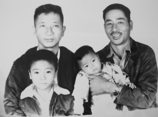 这次来潍坊,潘鲁潍带着一张父亲到台湾时拍摄的照片,照片前排的两个小孩是潘鲁潍和自己的一个哥哥,后排右侧是自己的父亲,左侧是父亲的一个战友。这张照片拍摄于上世纪六七十年代。