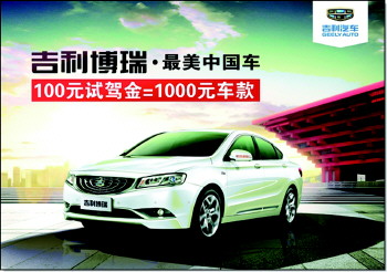 中国品牌高端轿车领跑者·吉利博瑞,试驾活动报名中,仅限100位,名额有限先到先得!缴纳百元试驾金即可参与,试驾不满意返200元现金,试驾满意现场订车100元试驾金可抵1000元车款。我们诚意满满,8月8日,就等您来!