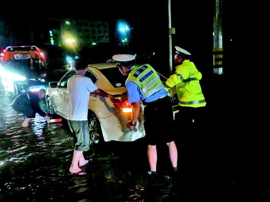 8月3日19时,长清城区普降暴雨,城区内部分主要路段积水严重,造成不少车辆进水抛锚,道路交通陷入瘫痪。长清交警大队根据前期预警信息,立即启动恶劣天气管控预案。执勤民警迅速到位,组织救援受困市民、车辆,强化路面巡逻,对积水路段及时指挥疏导。截至当日23时30分,雨势减小,各积水路段险情开始解除,路面逐步恢复正常。其间,长清交警共出动20名警力、两辆救援车,设置4处警示标志,拖拽各类社会车辆15辆,救助30多名受困市民,汇报12条实时路况信息,确保了降雨期间城区道路秩序稳定。