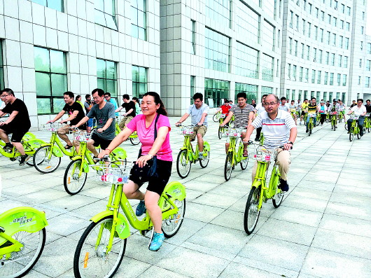 绿色的公共自行车,浩浩荡荡的骑行队伍,成为章丘夏日的一道亮丽街景。1日,章丘市交运局组织百余名市民以骑行的方式走上章丘街道宣传环保公益,引起了市民的驻足与关注。 记者 支倩倩 通讯员 牛文慧 摄