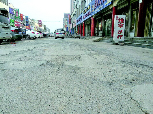 近日,记者来到了位于步行街南的经六路,只见两旁都是商铺,路基上的石子已经清晰可见,车辆通过时都放慢了速度,左右摇晃得非常厉害。