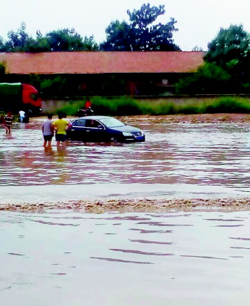 本报8月6日讯(记者 赵磊 王琳)8月6日,潍坊城区再次迎来一场降雨,春鸢路路段在降雨之后就变成了“积水路”。记者来到积水路段采访了解到,因为积水的原因,司机开车走到这里都十分小心,甚至有个别轿车熄火“趴窝”,也有一些“捞客”前来捞车牌索酬。