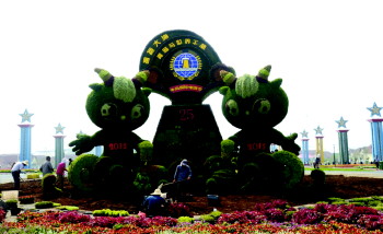 啤酒节西海岸会场入口处的吉祥物造型。潘旭业 摄