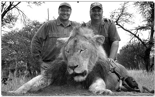 7月末,帕尔默花了50000美元,雇用了当地导游,到津巴布韦的大草原上猎狮去了。经过“努力”,他猎杀了一头威风凛凛的雄狮,然而,这却捅出了大娄子。