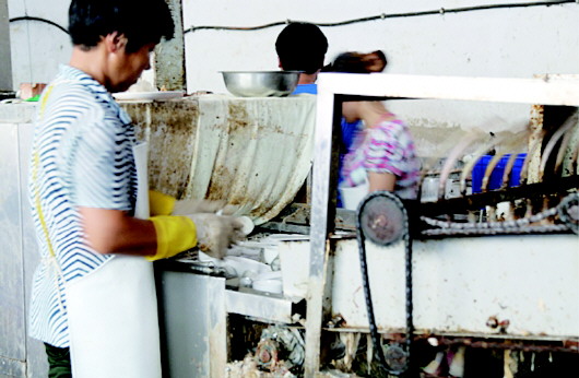 ◤9日下午,济南市卫生部门派人对七贤镇井家沟附近的一处消毒餐具生产作坊进行了现场执法,该作坊卫生情况堪忧。