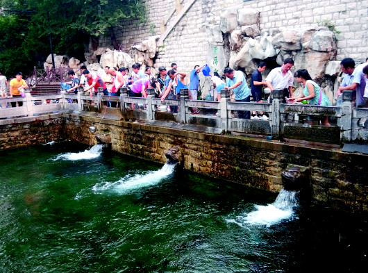 黑虎泉虎口喷水开始撒欢,前来提水的市民和游客也多了。本报记者 蒋龙龙 摄