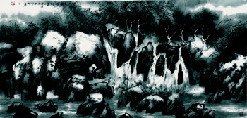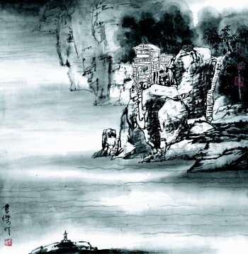 王书杰突出墨在画面中的地位。作为技法的笔墨显然在他的笔下已经非常娴熟,他利用对材料的研究,将作为绘画生命整体的笔墨提升到更高的层次,以期将画面的艺术气息更大程度的提升。例如,他对淡墨的运用,对水的处理,墨的积叠、干湿墨的交错,在点染勾写中,渴笔勾写树石,润笔涂写出气韵,在浓淡和谐的墨色中包含着丰富的质感变化。他特别注重留白的处理,当然,这也是他绘画的妙处所在,在浓淡干湿之间,注意虚处的处理,落脚在实处,表现出繁简之间的独特。他的作品,不论远、近,主、次,墨色或浓重,或清淡,用笔轻松自然,看似“漫不经心”但是虚处更见艺术之意趣。