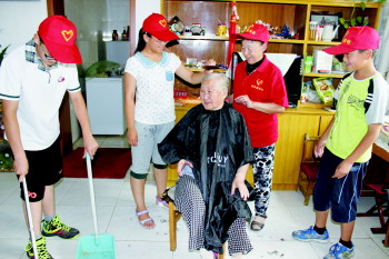 近日,锦华第一党员服务社“爱老敬老”亲情服务队的志愿者和锦华第一团青服务室“绿手杖”的小志愿者,来到辖区内两位独居老人家中开展了志愿服务活动。理发、收拾房间、陪老人拉家常……大、小志愿者陪老人度过了一个愉快的上午。据了解,为丰富学生的暑假生活,锦华第一党员服务社和第一团青服务室积极为孩子们搭建社会实践平台,传承尊老爱幼中华传统美德,倡导社会新风尚,传播社会正能量。