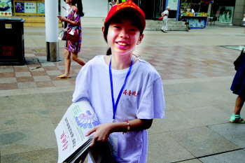 9日上午,8岁的小报童付怡萍、徐誉畅又早早来到台东步行街卖报。虽然她们年龄都不大,但是因为参加过前几期的卖报,并迅速成长,如今,她们已经成为卖报小明星,收获不少“粉丝”。当天,台东步行街有几名新加入的小报童,他们也立刻变成了付怡萍、徐誉畅的小尾巴,不停地请教该怎么卖得更好、哪里人会多一些?看到有小报童来求教,付怡萍十分高兴,她告诉记者,有时候看到其他小报童因为腼腆卖不出去报纸,她就暗暗着急,有时候干脆带着小伙伴们一起去人多的地方,帮助他们卖报。徐誉畅也会和几名有经验的小报童们一起教新来的小伙伴如何插报纸,选择在哪卖,如何叫卖,鼓励他们主动去推销,俨然一副小老师的样子。“我很喜欢出来卖报纸,觉得这种活动比去动物园有趣多了!”徐誉畅说,认识小伙伴,大家一起努力卖报,这才是吸引她积极参加营销秀活动的地方。