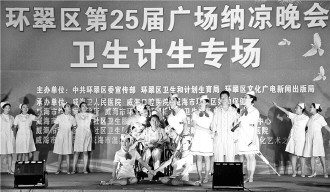 本报8月9日讯(记者 冯琳 通讯员 董希坤) 7日,由环翠区委宣传部、环翠区卫生计生局、环翠区文广新局举办的“健康路上,你我同行”——卫生计生文艺宣传专场演出”在幸福门广场举行。