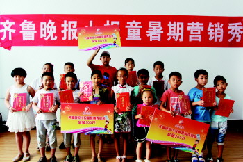 9日下午,随着颁奖仪式的进行,2015年齐鲁晚报第二期小报童暑期营销秀完美收官,14名小报童脱颖而出,分别摘得金银铜奖,另有9名小报童表现优异,获得“优秀小报童”称号。从7月27日开始,12天的营销秀中200余名小报童风雨无阻,卖出十余万份报纸。金奖小报童获得者田国凯卖出了1940份报纸。营销秀搭起了孩子们与社会沟通的桥梁,孩子们在活动中体验坚持的力量,学会以礼待人,更知感恩父母。 本报见习记者 李洋 摄影报道
