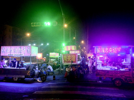 凌晨2点半,小吃摊客人不断。济南的夜经济基本就是餐饮、娱乐,形式比较单一。 本报记者 王皇 摄