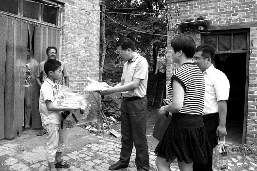 陈卫华和同事们将慰问品和慰问金送到小强和爷爷手中。