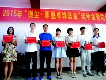 10日,2015年“微尘·即墨卓锋基金”助学金正式发放,24名优秀高三毕业生和贫困生得到13万元资助。其中,12名贫困生获助5万元。作为一项公益基金,卓锋基金自2011年成立以来,已经累计捐助376万余元。