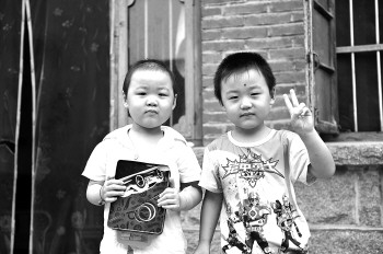 因打激素药,小纪宇(左)有些浮肿,站在哥哥旁明显更胖些。