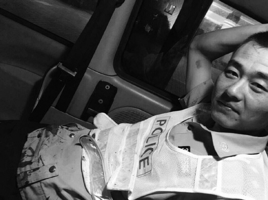 10日下午,记者终于联系到了参加现场救人的四名交警,他们是滨州市滨城区交警大队特勤中队的崔红卫、于航、刘松松、张鲁俊四名协警。9日晚,正在附近执勤四人听到群众的求救声,奋不顾身跳入臭水沟中。