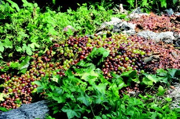韩大姐的葡萄园门口摆着一早刚摘出来的四大袋烂葡萄,看着很可惜。“早熟葡萄最怕雨水,一淋雨就裂果,这几天每天都能拣出好几百斤。”种了3亩早熟葡萄的韩大姐,这两天一看到阴天下雨就愁眉不展。