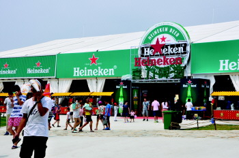 11日白天烈日当头,海上啤酒节游客仍络绎不绝。