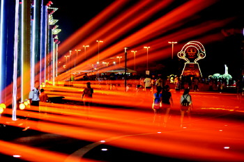 酒足饭饱后,在会场内散散步也是不错的选择。啤酒广场237米长的中央大道上,由两侧34组高10米的大型发光体立柱式五星造型光柱、168台国内最先进的高亮度光束探照灯和大功率激光形成灯光欢迎大道,灯光从多元化空间迸出,表现出梦幻的激光影像和绚烂夺目的光影效果。