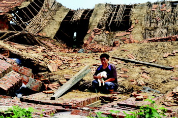 叶永训虽然想尽快把羊救出来,但是因为羊圈随时有再次塌陷的可能,所以他没敢动。此外,房子的檩条很重,加上上面压的砖瓦,他一个人也无能为力。叶永训说,他除了将废墟周边的几只羊抱走之外,剩下的羊只得让它们在废墟中自生自灭。他本以为剩下的羊早就死光了,但是没想到三天之后竟在废墟中发现了奇迹。“一只小羊羔在已经死去的妈妈身边活了下来。”叶永训说,11日上午,他再次来到废墟上察看情况,没想到在一只母羊尸体旁找到了一只活着的小羊羔,已经奄奄一息的羊羔用尽力气冲他叫了一声。“母羊是被一根檩条砸死的,羊羔一直在它怀里,身边就是一个水盆,所以才侥幸活了下来。”叶永训说,这次意外他损失了全部的待产母羊,损失约4万元。