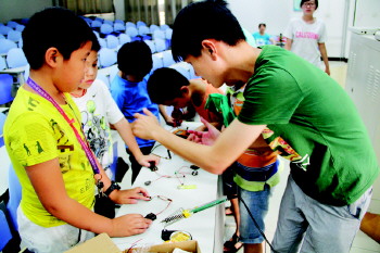 这是7月的一天,中国石油大学一间教室内的师生对话。这里的“老师”是石油大学梦之翼助学团的学生志愿者。学生则是周边的外来务工人员子女。“很多外来务工人员工作忙、累,暑假没有时间陪孩子。又因经济受限,无法给孩子报兴趣班。”梦之翼助学团团长王妙说,与孩子们聊天时,他们得知很多小朋友的暑期生活很单调,大部分时间窝在空间很小的住处看电视。于是他们萌生了关爱外来务工人员子女暑期生活的想法。