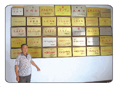 大图:仪封村的环境美观。 小图:仪封村获得的荣誉奖牌挂满整个墙面。
