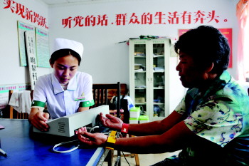 漱玉平民大药房工作人员免费给村民查体。 本报记者 王鸿哲 摄