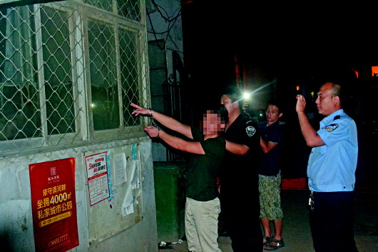 嫌犯姚某辨认作案现场。