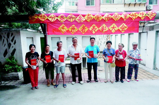 “这次我们表彰的这8位志愿者,多数都是从2012年垃圾分类一开始推行就已经上岗工作。”纪欣欣介绍说,从去年11月份开始,社区里的垃圾分类志愿者每天固定时间在社区的垃圾桶附近指导居民进行垃圾分类,这一站就是将近一年。