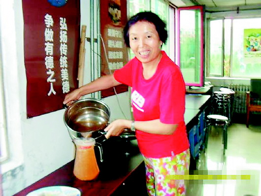 妻子戴桂英乐于助人 爱心绿豆汤熬了一锅又一锅