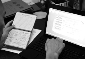 一位家长录入户籍信息。本报记者 李岩松 摄
