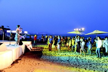 第25届青岛国际啤酒节首度在西海岸金沙滩新辟会场,酒店住宿供不应求,使得啤酒节西海岸会场周边不少宾馆的客房成了香饽饽,各酒店连锁、五星酒店也都蓄势待发。为吸引游客,日前,西海岸涵碧楼酒店举办“私家啤酒节”,在沙滩等区域开辟专属啤酒节,期间推出演出及特色美食,受到了游客的欢迎。