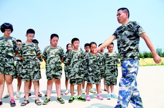 ◤教官为小营员做起步走动作示范。