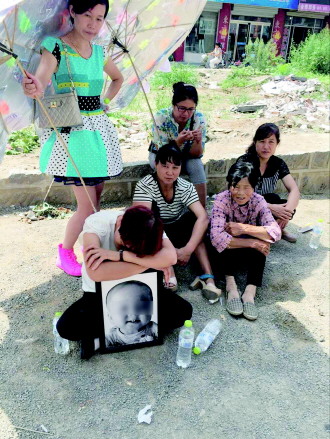12日上午死者家属来到许伟亭诊所门前,希望得到合适的赔偿。 本报记者 刘婷婷 摄