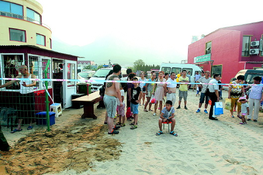 ▲仰口沙滩的“野浴场”频出事,管理方拉上警戒,禁止游客进入。