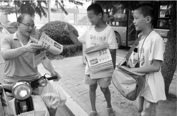 小选手卖报速度越来越快。本报记者 于伟 摄