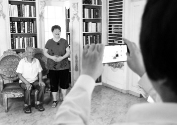 女儿在一旁用手机记录下幸福时刻。本报记者 李岩松 摄