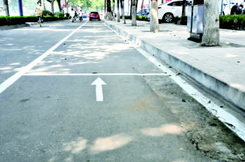 13日,兴华路卫育路路口北侧的非机动车道上画上了停车位。据了解,为缓解道路拥堵,解决停车难的问题。部分路段的非机动车道上都新增了停车位,市民可把自己的车辆按正确方向停放。
