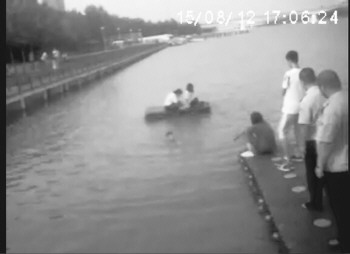 在警方执法记录仪画面里记者看到,两名13岁左右女孩坐在一张长约两米、宽约一米的蓝色漂浮板上,已经漂到了河中央位置,两名女孩身边并没有其他人员陪同,而一名女孩坐在漂浮板上不断向岸边看来,似乎希望有人上前营救。报案市民称,两名女孩原本是坐在岸边漂浮板上玩,两个会游泳的小男孩将女孩推到了河中央,但是此时却不见了男孩身影。由于此时有风,河面上并不平静,女孩在河中央随时可能被冲走。